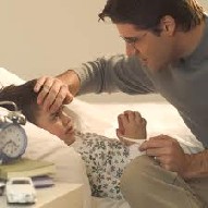 Признаки бактериального менингита. Если произошло повышение температуры тела и при этом имеется напряжение мышц шеи с выраженным отклонением головы назад (ригидность), то это симптомы тяжелого заболевания — бактериального менингита. У маленького ребенка ригидность проверяется следующим образом: возьмите игрушку, держите ее на уровне глаз; когда заметите, что ребенок следит за предметом, опустите его вниз до уровня пупка. Если ребенок не сможет опустить голову к грудной клетке и проследить за игрушкой, значит, ригидность мышц шеи присутствует.